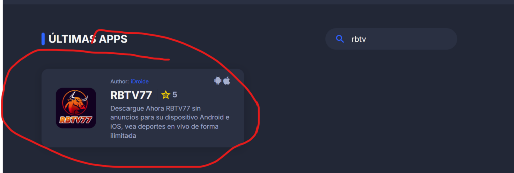 Te llevará a una tienda secreta de apps llamada iDroide en donde buscarás la app de RBTV77 y procederás a seleccionarla e instalarla en tu celular android